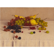 ![]() | LOT.212 高島 野十郎「ぶどうと洋梨」 33.3×45.5cm(57.0×69.2cm) キャンバス・油彩 額装 1954年作 左下にサイン 裏に署名・タイトル・年代 高島野十郎鑑定登録委員会鑑定登録証書付 エスティメイト:600万円~900万円 |